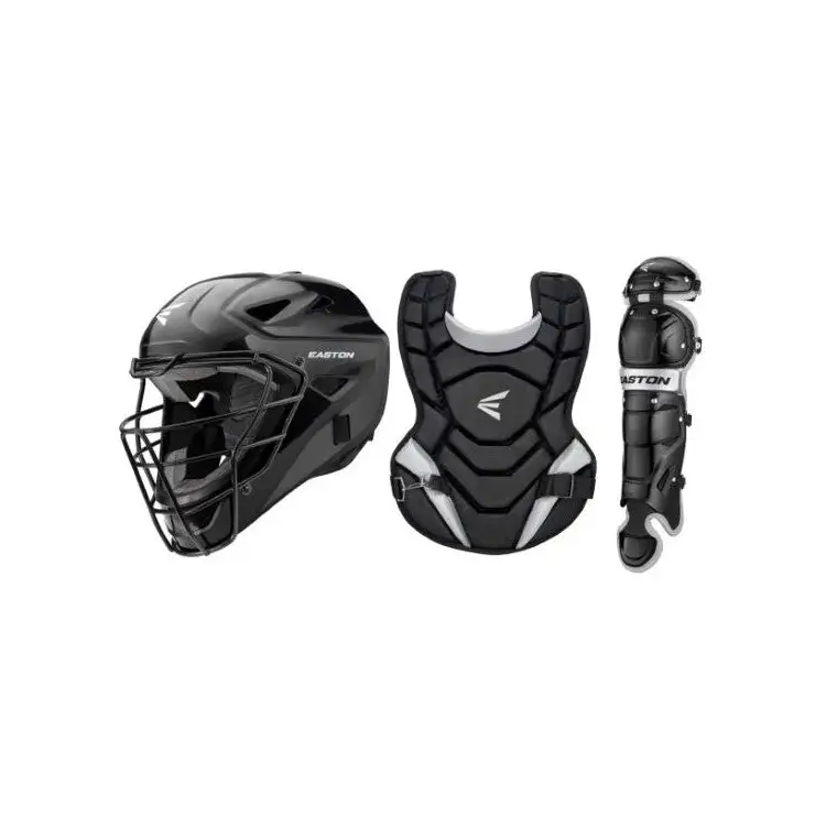 Easton’s® second-generation Black Magic 2.0 Box Set is perfect for the youth or beginner catcher. This Catcher’s set includes a hockey-style ABS Thermoplastic Shell Helmet with steel cage and dual-density foam, Chest Protector with foam padding for protection and Leg Guards with double-knee protection. Available in Youth size.