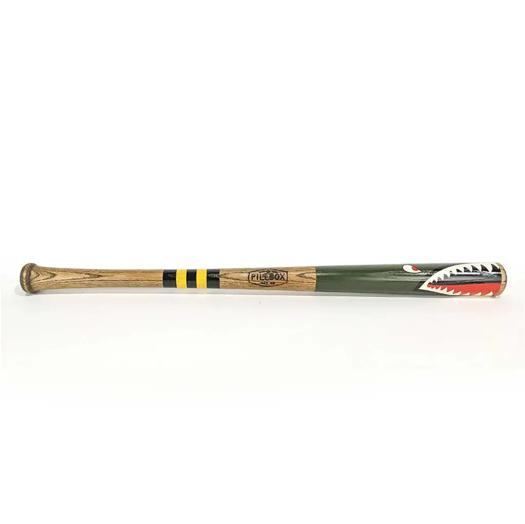 The โShark Batโ is an Ash wood baseball bat painted to honor the nose art on Vintage warplanes that flew countless missions over the years to keep our nation safe. Iconic Americanaโฆas American as Baseball. Every Pillbox artist baseball bat is crafted and painted at the Pillbox shop in Minnesota.